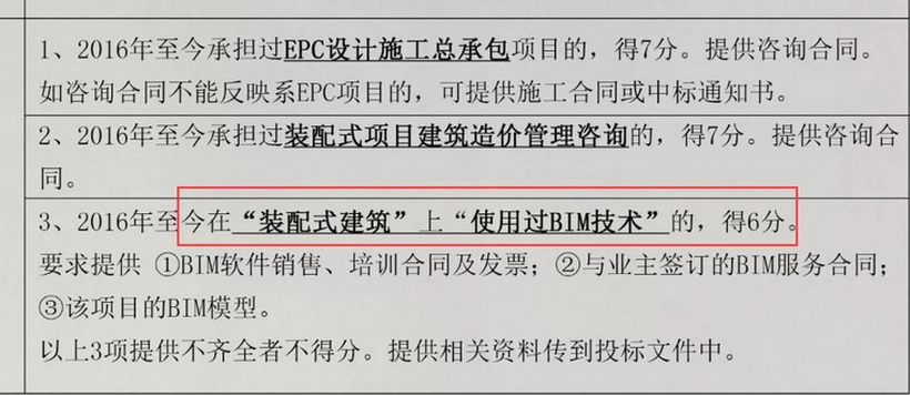 所以,施工单位想要中标,就需要不遗余力地开展BIM学习,比如某项目的招标文件中更直接表明了BIM证书的地位: