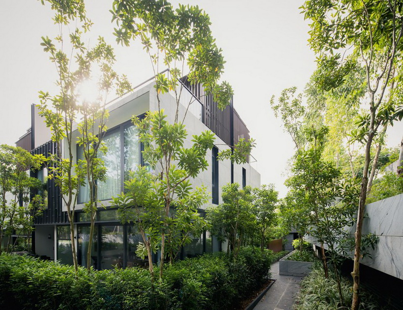 有赖于建筑设计和景观设计的无缝对接,Asimont别墅区创造一个和谐的户外环境,室内和室外的边界趋向模糊,相互借景,融为一体。